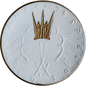 Der Phoenix erscheint erstmalig auf einer Keramikmedaille (Weihnachtsspiel) von 1920. Hier ist stark der klassische Eindruck erkennbar, der sich im Einzeldetail (Federkleid) erkennen lässt.